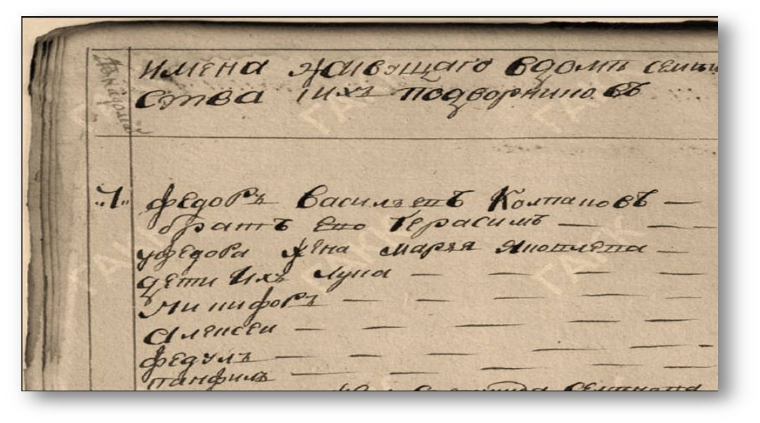 «Василей Семенов Колпаков, умре в 1769 году, у него жена Наталья Васильева дочь,